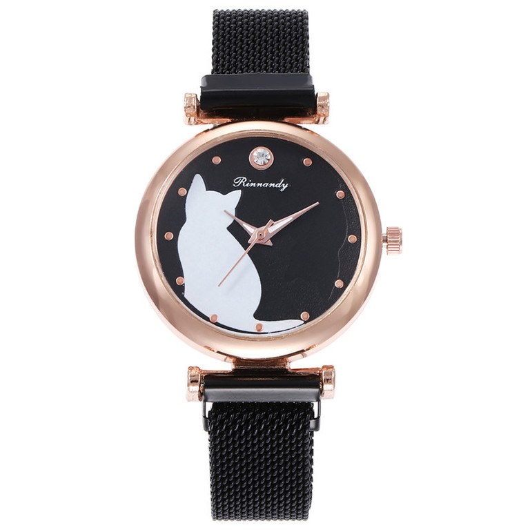 Reloj de moda, color como el de la foto,Reloj Diamantes Negro Extensible Metal Mesh Imán Gato Blanco.
