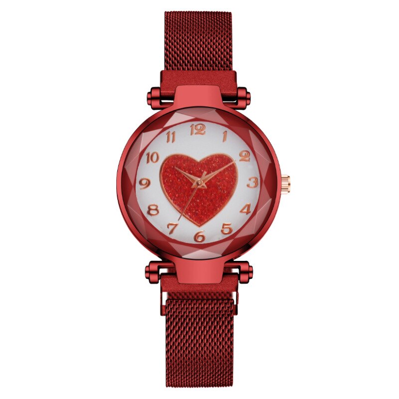 Reloj Rojo De Metal Mesh Caratula Con Diseño Blanca con Corazon Rojo Proveedores Mayoristas De Fabrica R4673